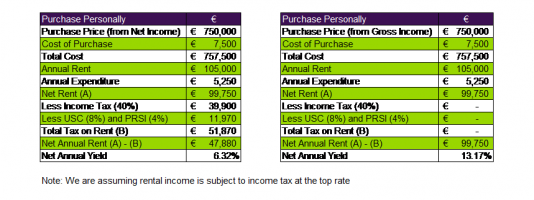 The big advantage is tax. There is tax relief on both personal and company contributions. Rental income earned within the pension is tax free and when it comes to the sale of the property, the sale is free from Capital Gains Tax. This can be very attractive when one considers the income tax and capital gains tax arising where the property is held personally. We have set out below a simple comparison of both scenarios.