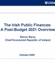 Simon Barry, Chief Economist Republic of Ireland with Ulster Bank presented on Budget 2021 at the Budget Webinar held on Wednesday, 14th October 2020.